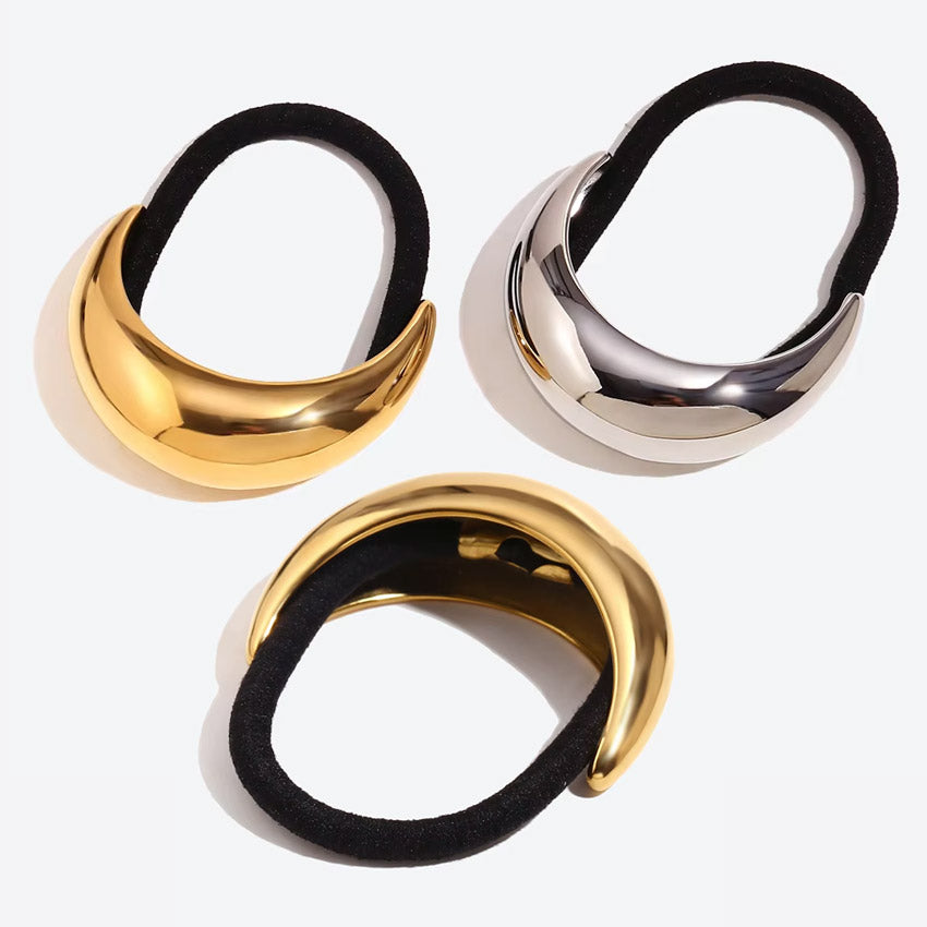 Elevate your hairstyle with our Stainless Steel Hair Tie Cuffs, a set of five minimalist yet sophisticated accessories designed for a polished look. Featuring a sleek, simple curved metallic design, these cuffs are crafted from durable stainless steel for a luxurious and lasting finish. Available in both elegant gold and classic silver, they are perfect for securing short or long ponytails with a secure yet gentle grip. This versatile accessory seamlessly blends simplicity with elegance, making it an ideal choice for everyday wear or special occasions. Add a touch of modern sophistication to your look with these timeless hair tie cuffs.