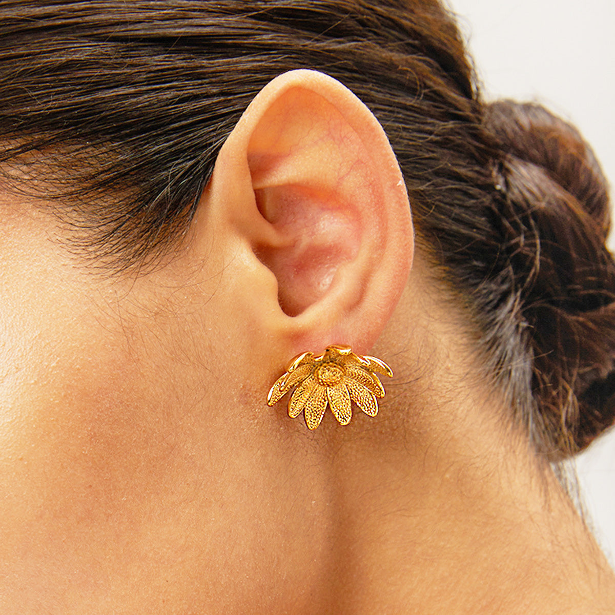 - Product Name: Stainless Steel Daisy Textured 3D Sunflower Stud Earrings