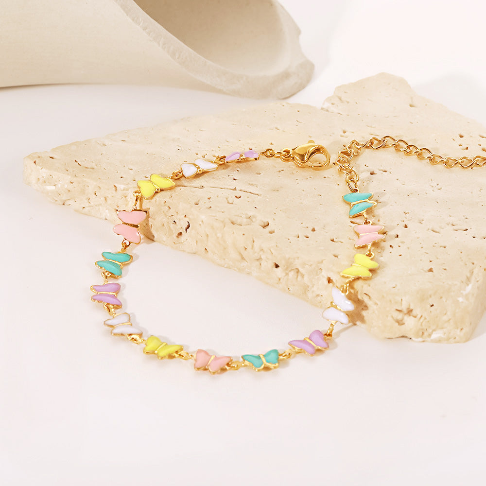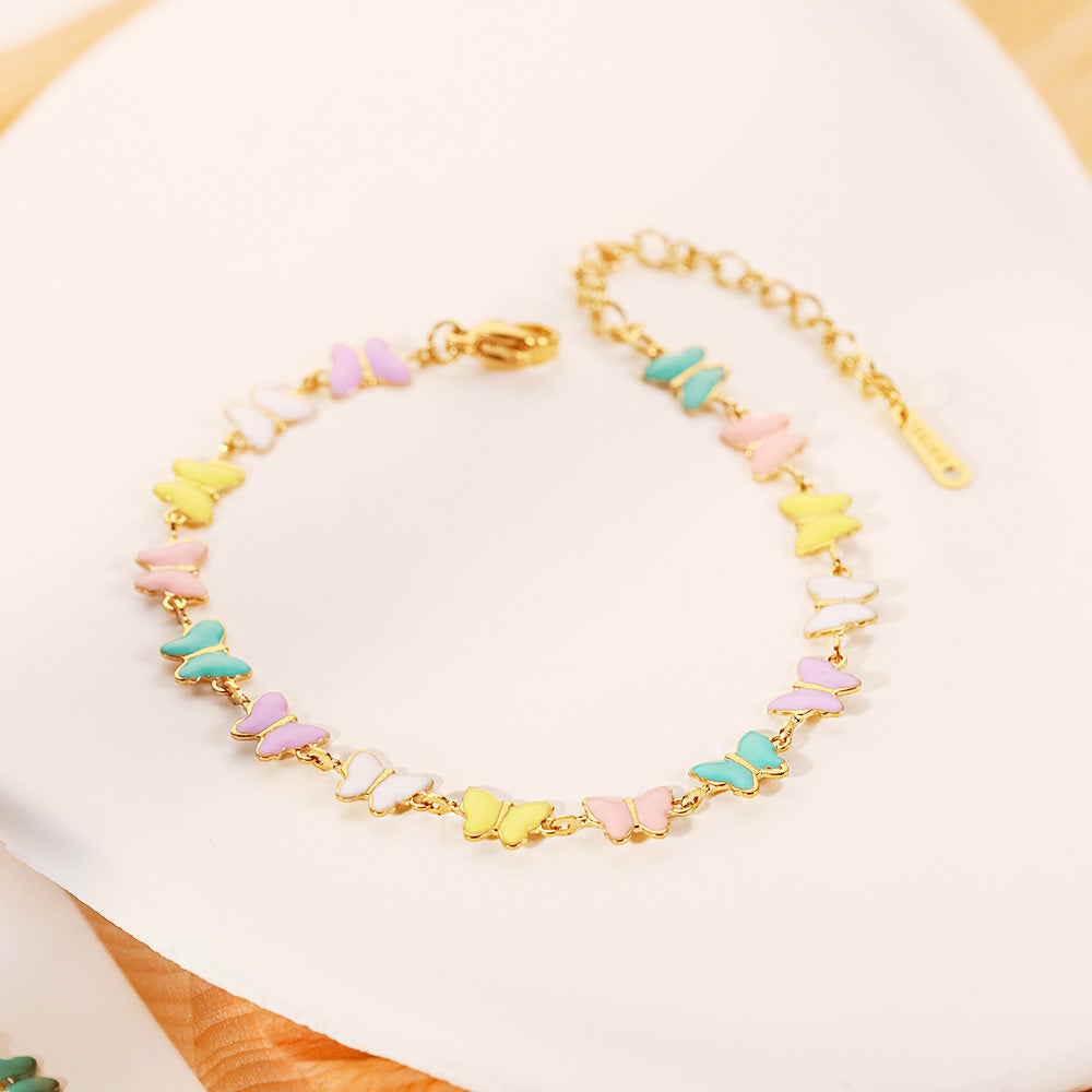 - Product Name: Enamel Butterfly Charms Chain Bracelets (Set of 5)