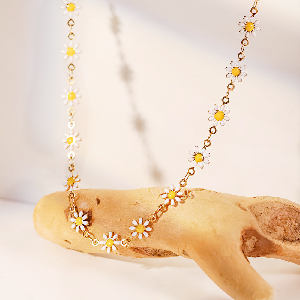 - Product Name: Stainless Steel Enamel Daisy Flower Chain Choker Necklace Set
