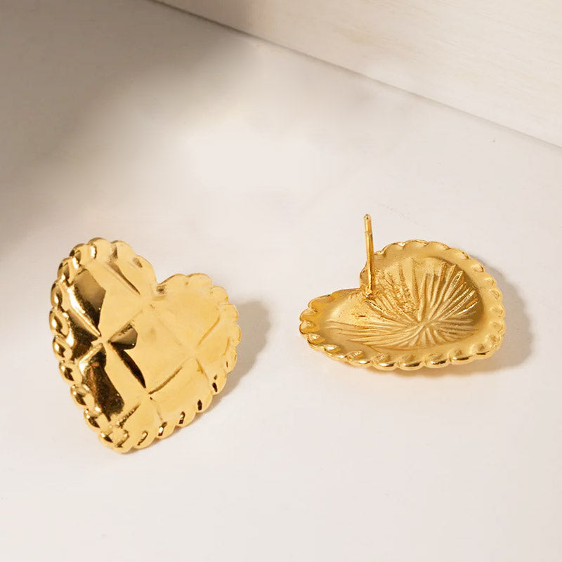 - Product Name: Stainless Steel Gold Metallic Plaid Love Heart Stud Earrings