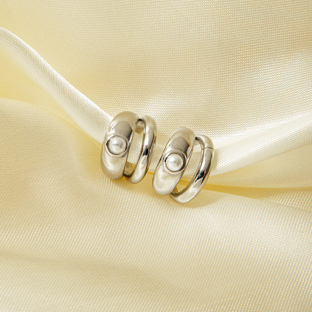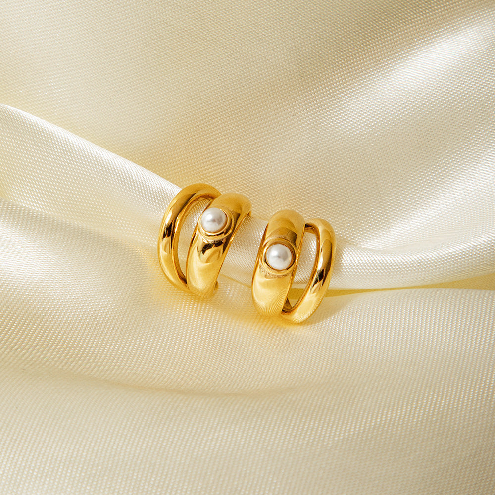 Stainless Steel Gold Minimalist Double-Layer Pearl Inlay Ear Cuff Clip Earrings