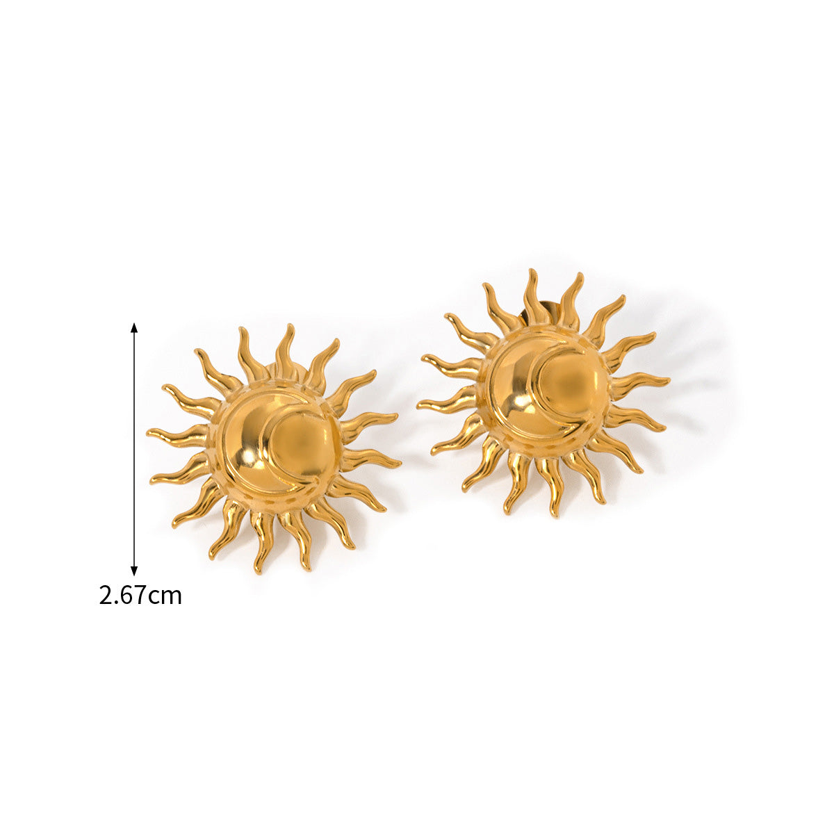 Each piece is meticulously made from high-quality stainless steel, known for its hypoallergenic properties and resistance to tarnish, ensuring long-lasting wear and brilliance. The stunning gold plating provides a luxurious finish that beautifully complements the intricate sun motif.