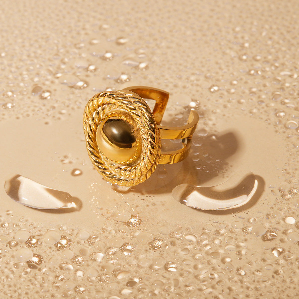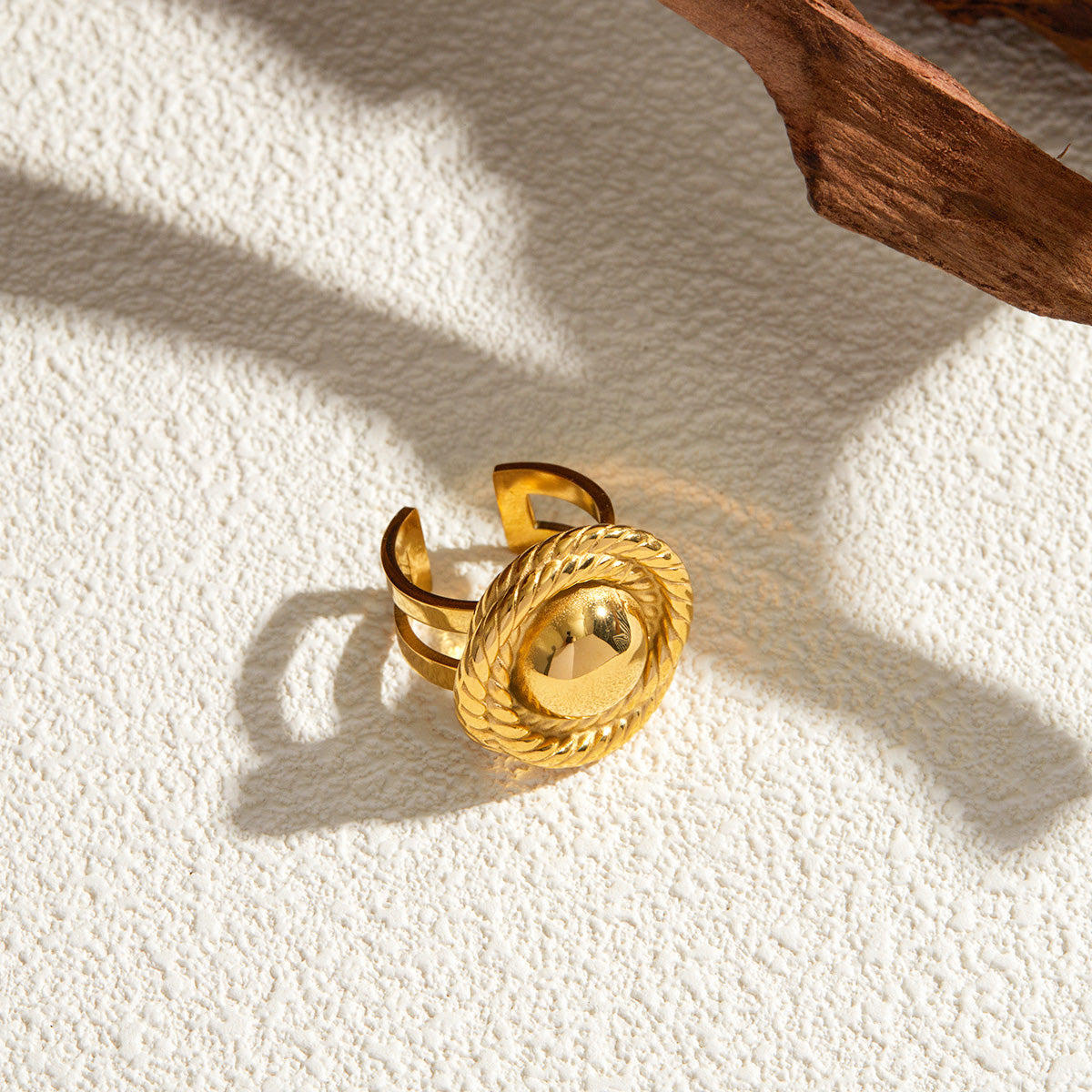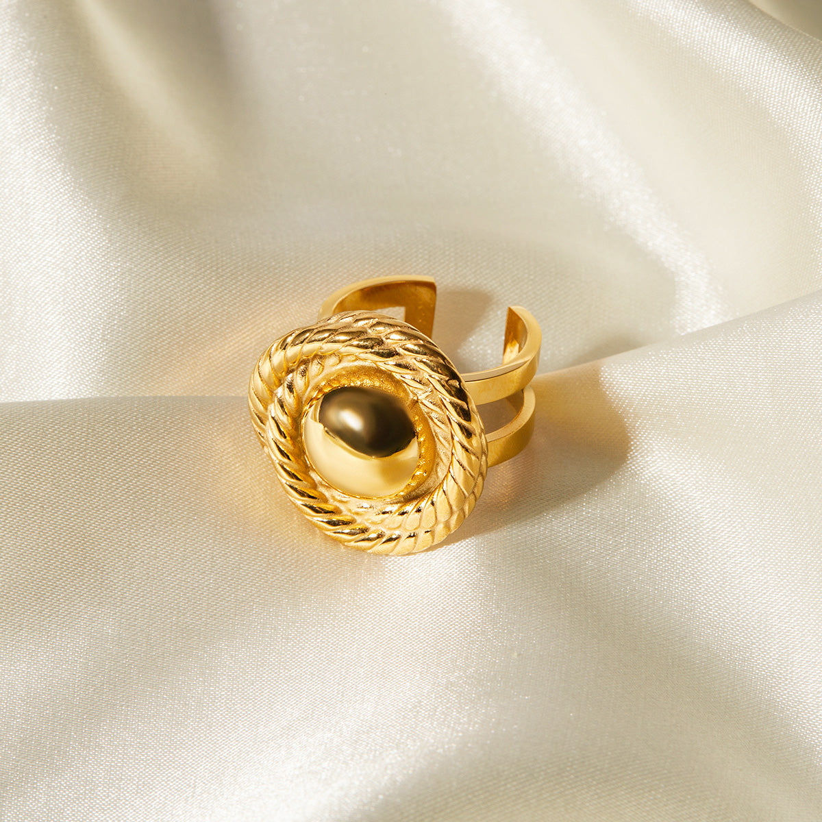 - Product Name: Stainless Steel Gold Rope Textured Circle Open Rings Set