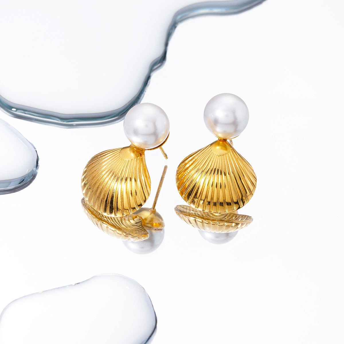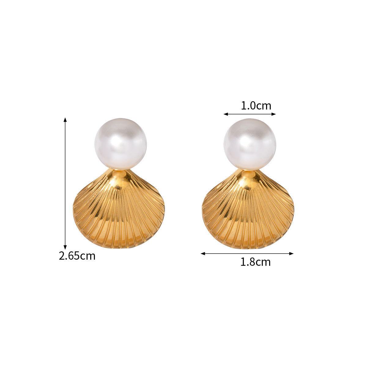 - Product Name: Stainless Steel Gold Shell Shape Single Pearl Stud Earrings
