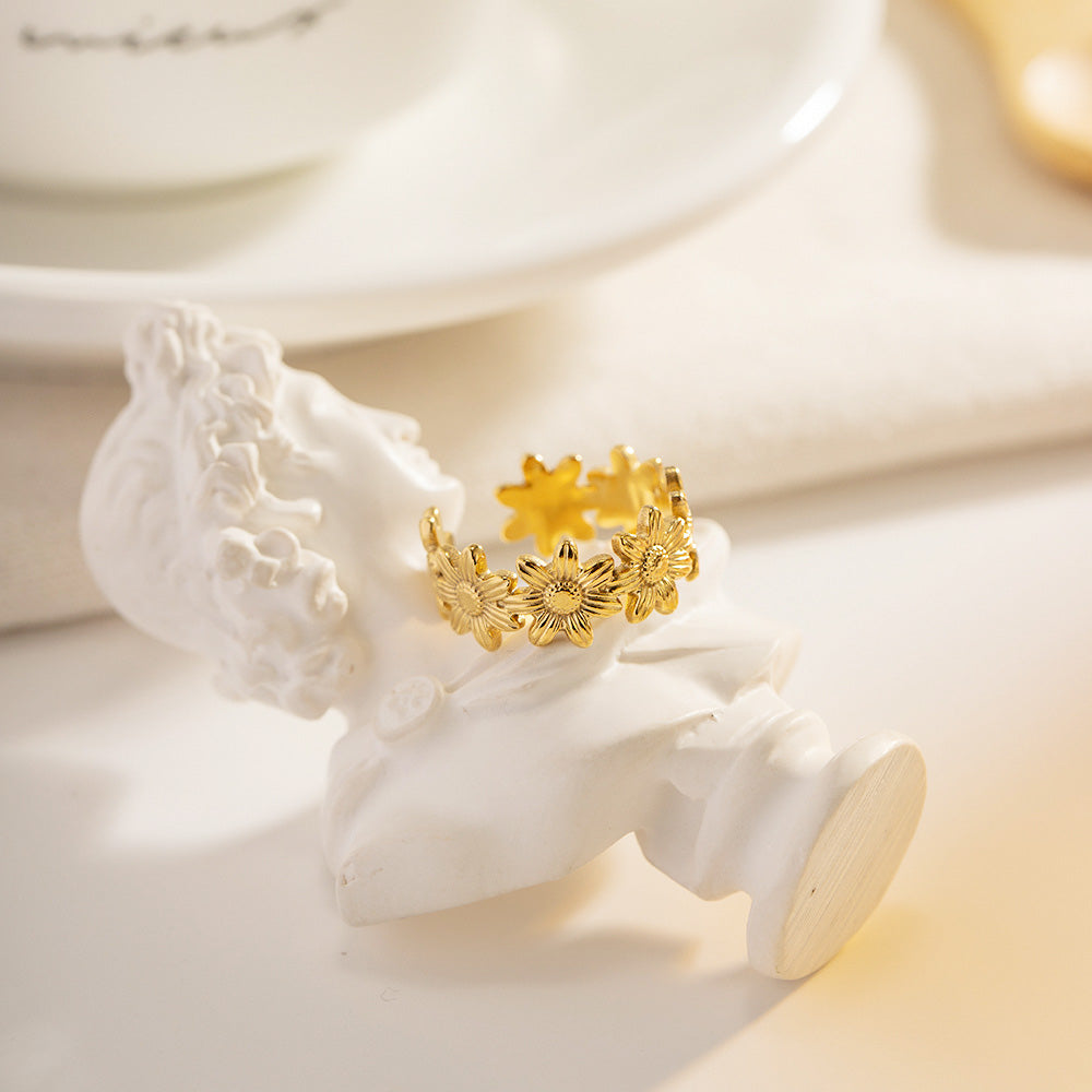 - Product Name: Stainless Steel Gold Sunflower Open Cuff Rings