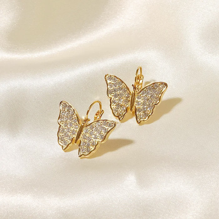 - Product Name: Stainless Steel Gold Zircon Butterfly Drop Hook Earrings (5 pairs)
