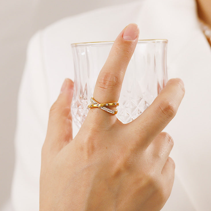 Elevate Your Style with Our Gold Zircon Crisscross Ring Set