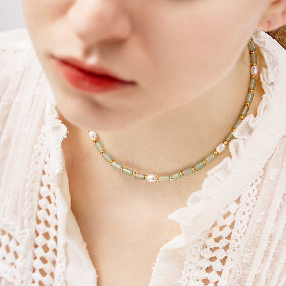 - Natural Elements: Features an enchanting mix of green natural stones and lustrous white pearls for an organic, earthy feel.