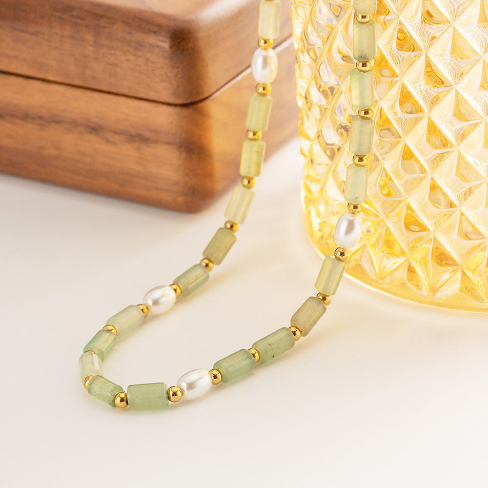 - Product Name: Stainless Steel Green Natural Stones Beaded Pearl Boho Necklaces
