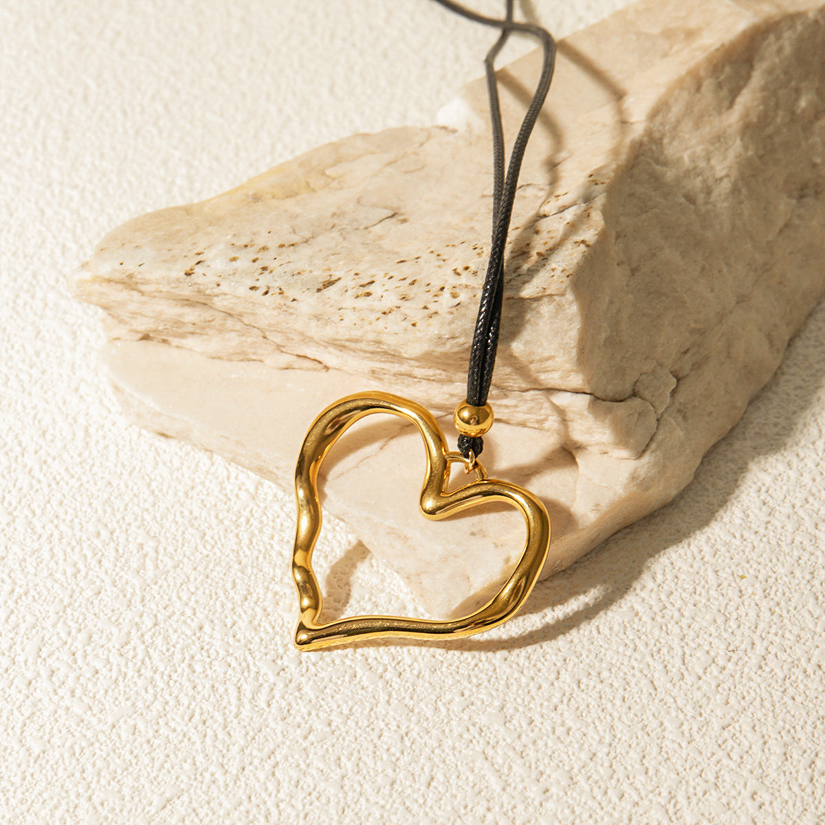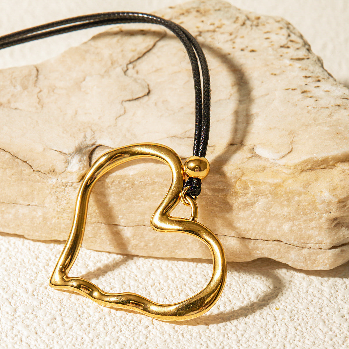 Stainless Steel Hollow Heart Pendant Leather Necklace (Set of 5) - Custom Jewelry Manufacturing