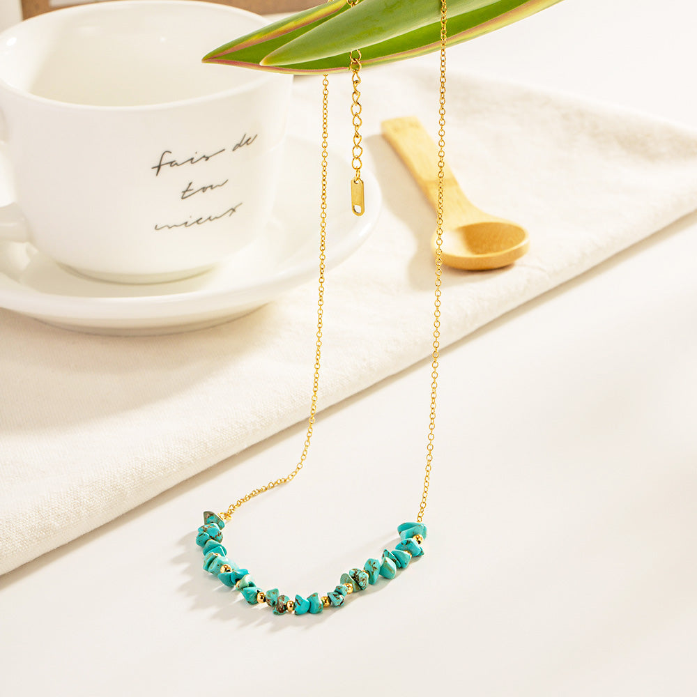 Crafted from high-quality stainless steel, these necklaces are built for durability and are resistant to tarnishing, ensuring they remain a cherished part of your collection for years to come. The vibrant, irregularly shaped turquoise beads provide a unique, organic feel, making each necklace one-of-a-kind.