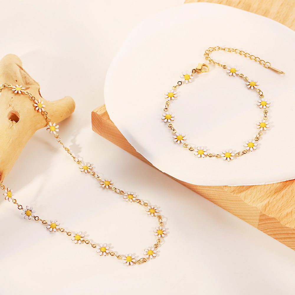 - Product Name: Korean Style Enamel Daisy Flower Charm Chain Bracelets