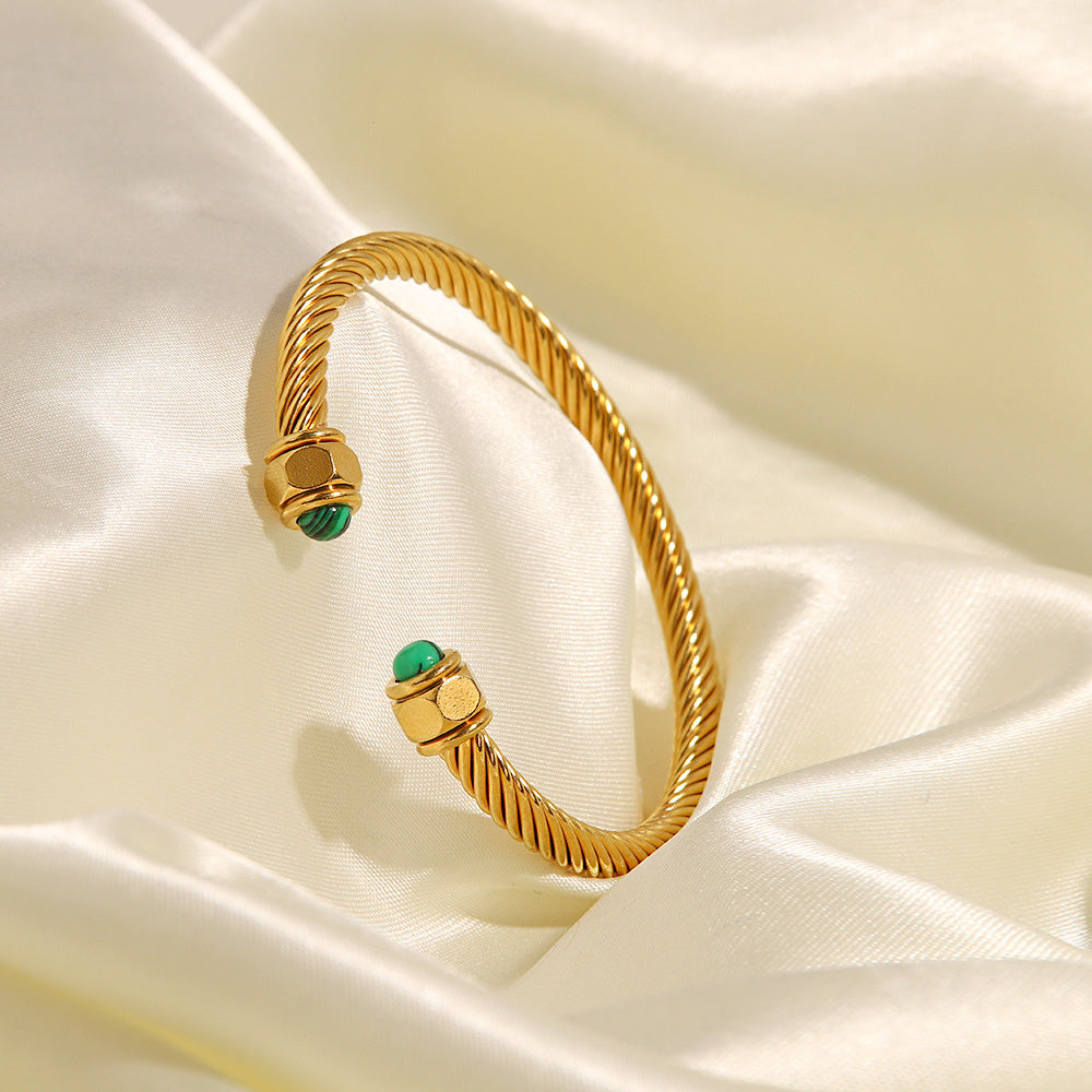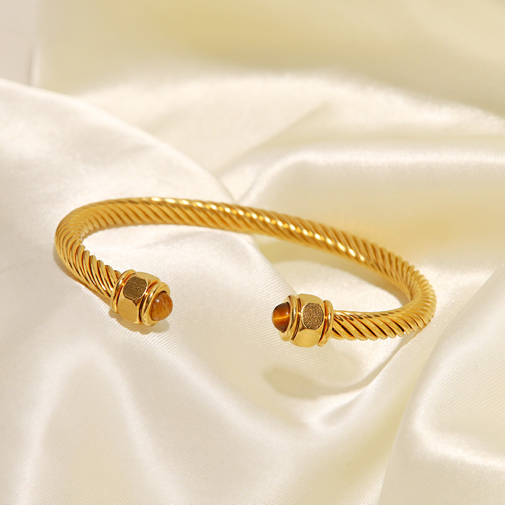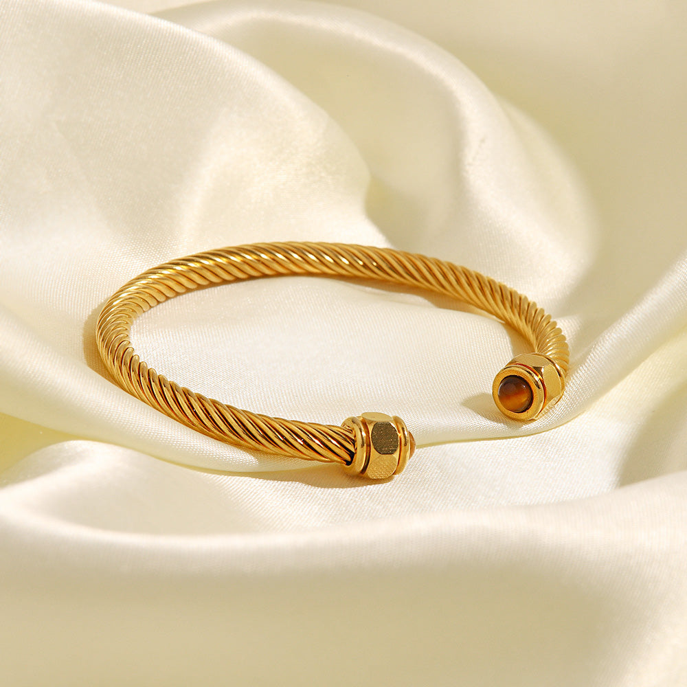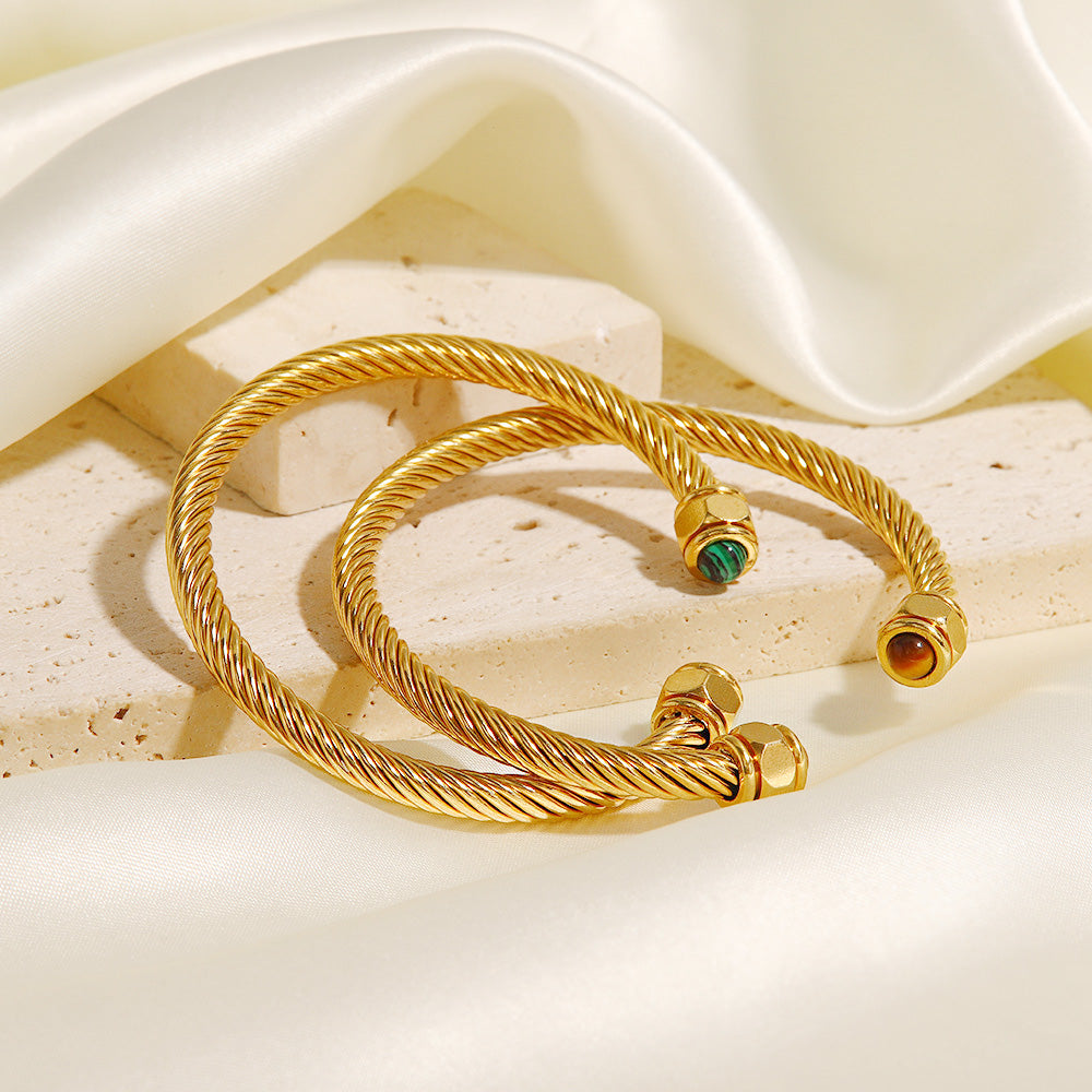- Product Name: Stainless Steel Nature Stone Twist Pave Open Cuff Bangles