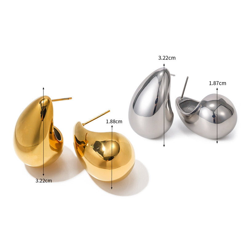 These stunning water drop stud earrings are crafted from high-quality, polished stainless steel, offering both durability and a sleek, modern aesthetic. The unique hollow and chubby design provides a bold look without the weight, ensuring comfort for everyday wear. Available in both gold and silver finishes, these earrings are a versatile addition to any jewelry collection.