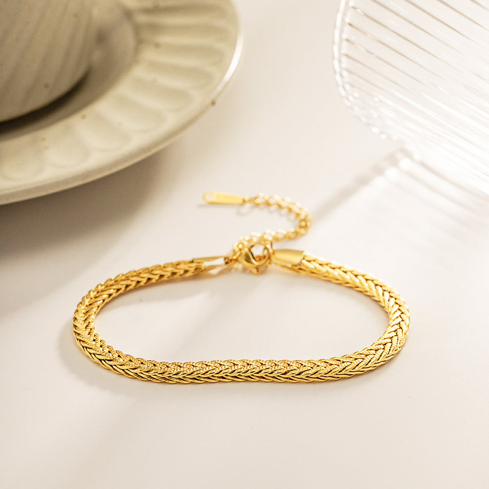 Discover the perfect blend of vintage charm and contemporary craftsmanship with our Stainless Steel Retro Wide Curb Chain Bracelets. This set of five bracelets is designed for universal appeal, making it a staple accessory for any collection. The classic wide curb chain design exudes a bold yet sophisticated retro vibe, while the high-quality stainless steel construction ensures it is resistant to tarnish, rust, and corrosion. Finished with a brilliant gold plating, these bracelets offer the luxurious look of gold with superior durability.