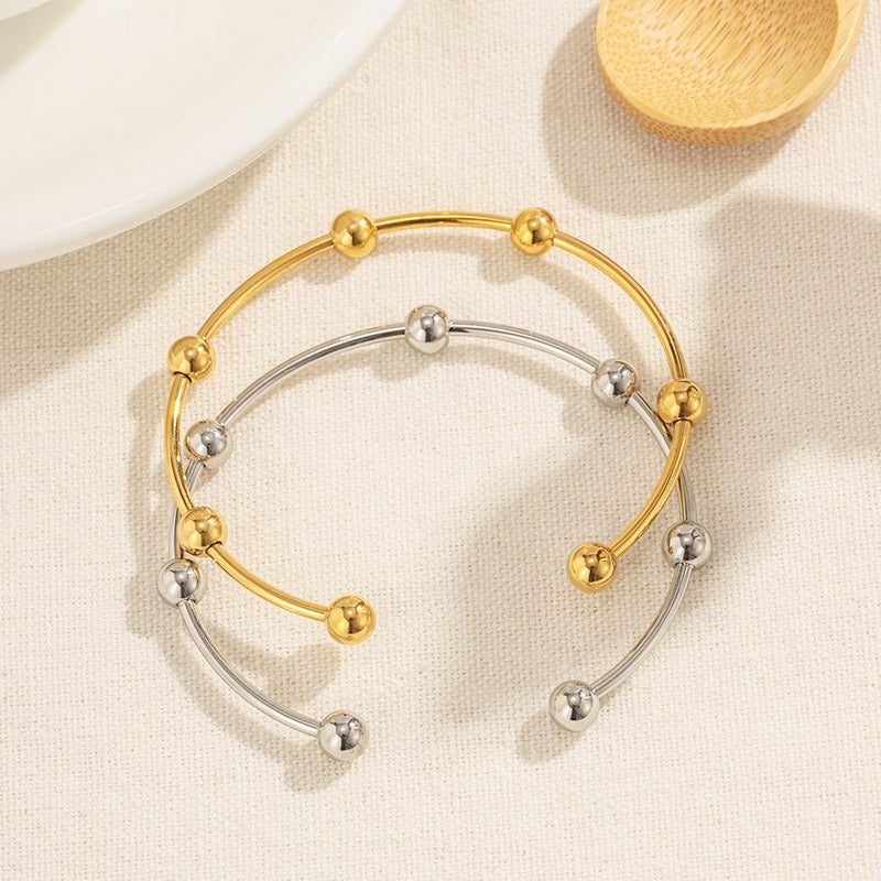 - Product Name: Stainless Steel Round Bead Open Cuff Bangle Set