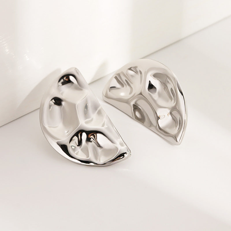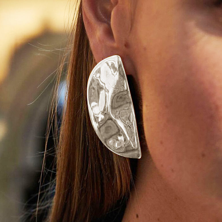- Product Name: Shiny Hammered Finish Half-Circle Stud Earrings