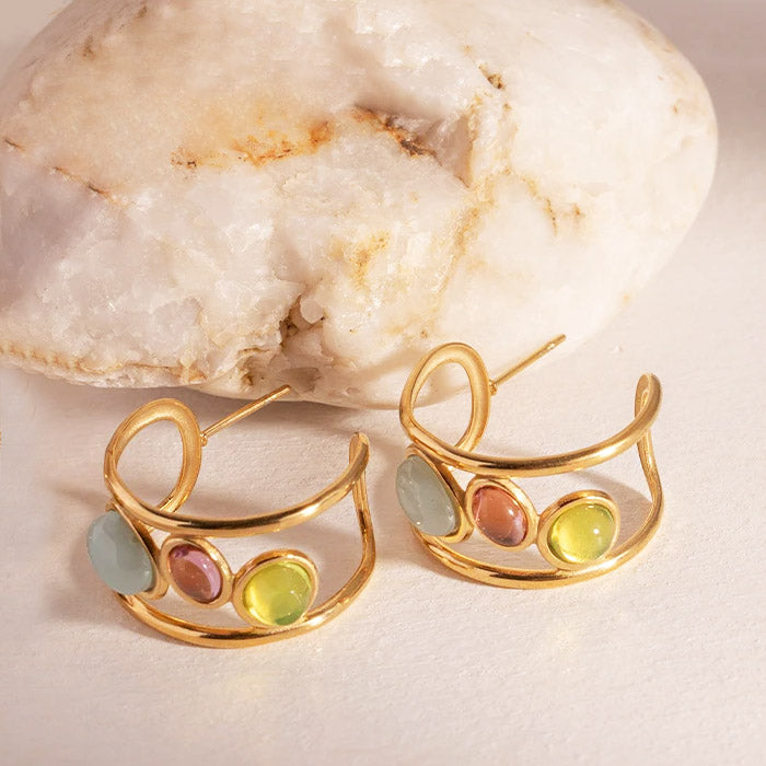 Stainless Steel Spanish-Style Three-Color Opal Stone Stud Earrings - Custom Jewelry Manufacturing