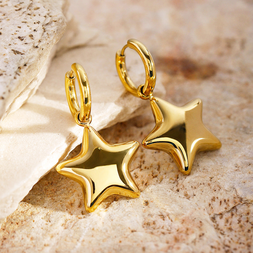 - Chic Design: The delicate star-shaped charm dangles gracefully from a classic huggie hoop, creating a subtle yet eye-catching movement.