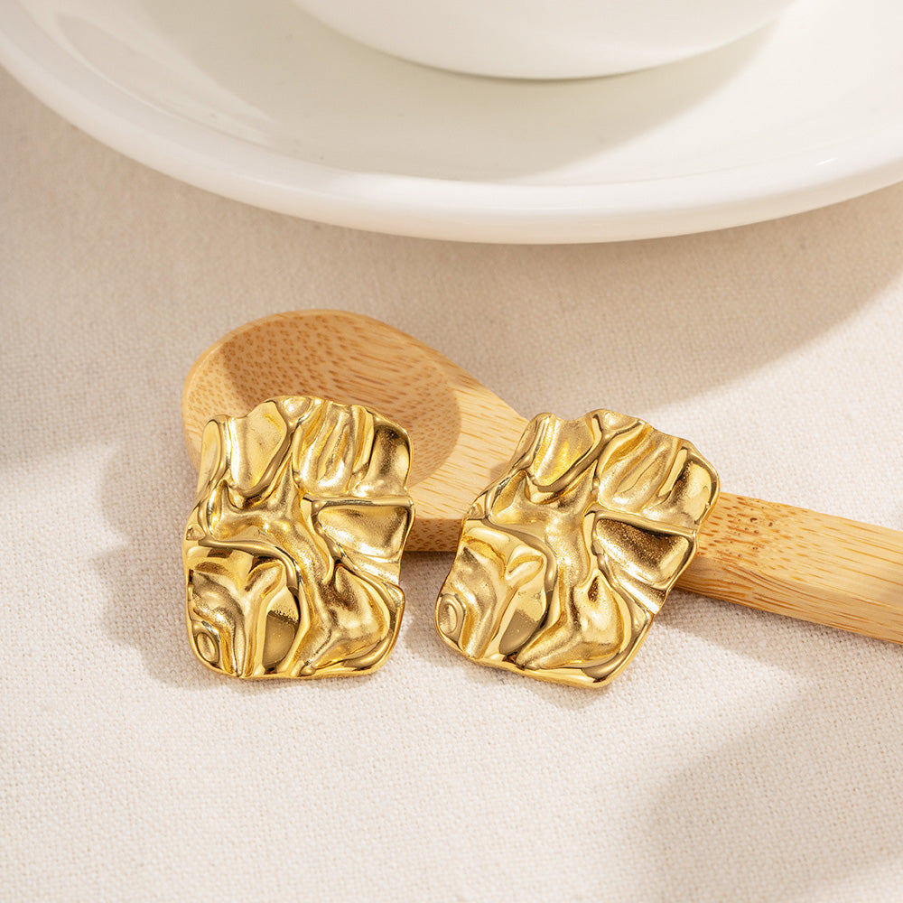 - Product Name: Stainless Steel Chunky Texture Rectangle Stud Earrings
