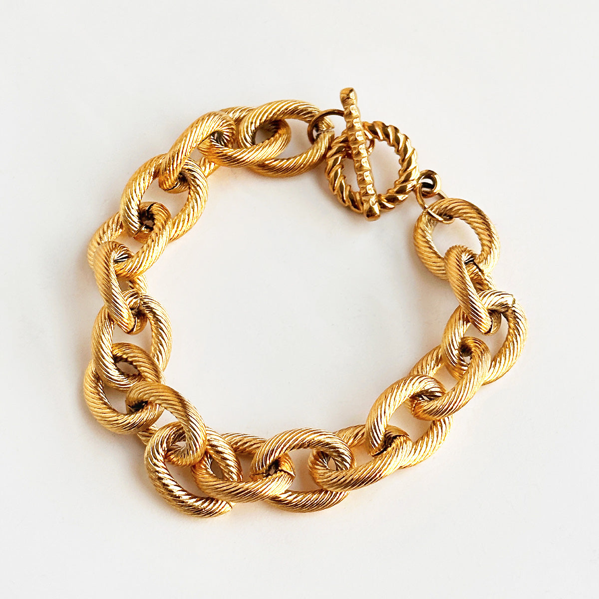 This exquisite set of five bracelets is a testament to contemporary jewelry design. The combination of different chain textures—from the bold wide link to the intricate rope—creates a dynamic and fashionable look. The toggle clasp provides a secure and easy-to-use closure that complements the overall aesthetic. Ideal for fashion brands, retailers, and wholesalers looking to offer high-quality, on-trend accessories.