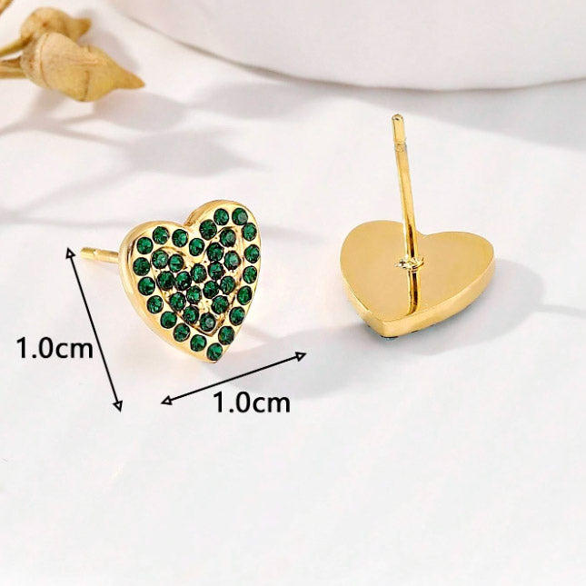 Stainless Steel Waterproof Gold Pave Green Zircon Heart Stud Earrings - Custom Jewelry Manufacturing