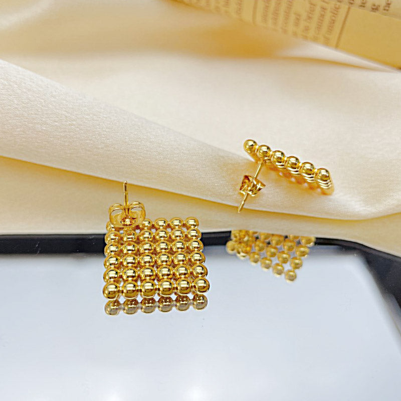 Stainless Steel Waterproof Gold Round Bead Square Shaped Stud Earrings (5 Pairs) - Custom Jewelry Manufacturing