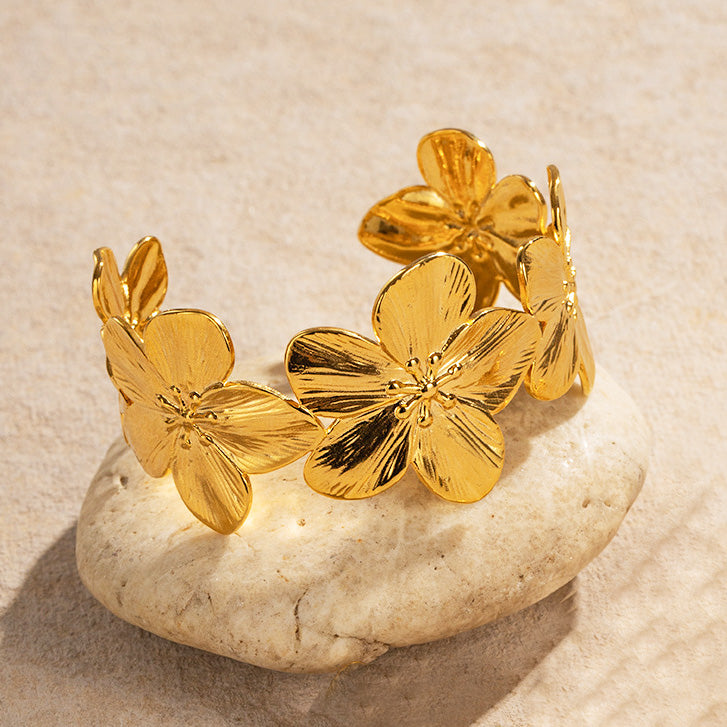 Embrace Nature's Beauty with Our Gold Floral Cuff Bracelet Set