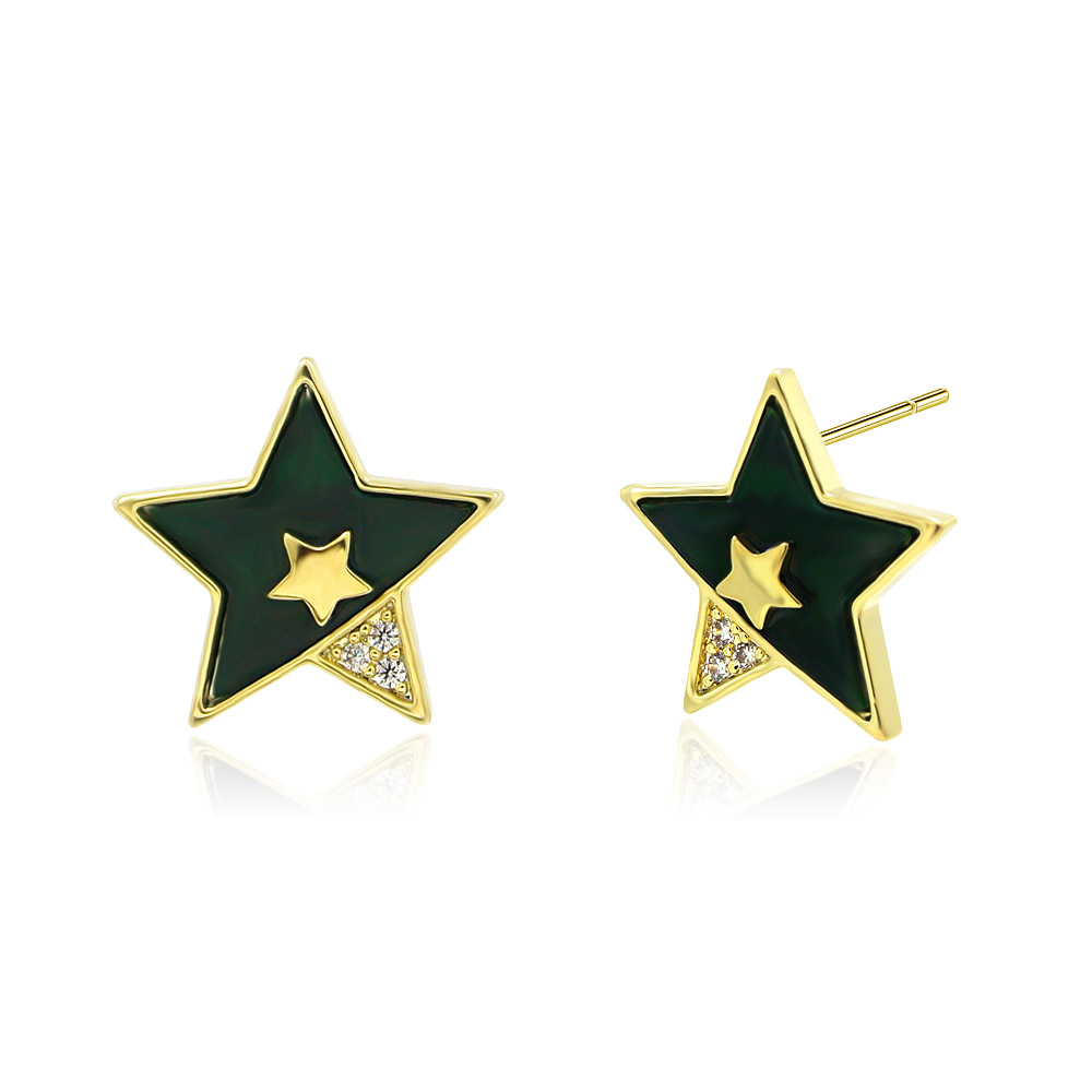 Whether for a special occasion or everyday wear, these star stud earrings offer a timeless appeal. Their unique combination of dark green enamel, gold plating, and sparkling stones makes them a versatile piece that complements any outfit.