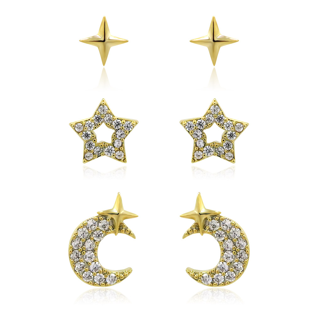 A Dazzling 3-Pair Stud Earring Set with Celestial Charm