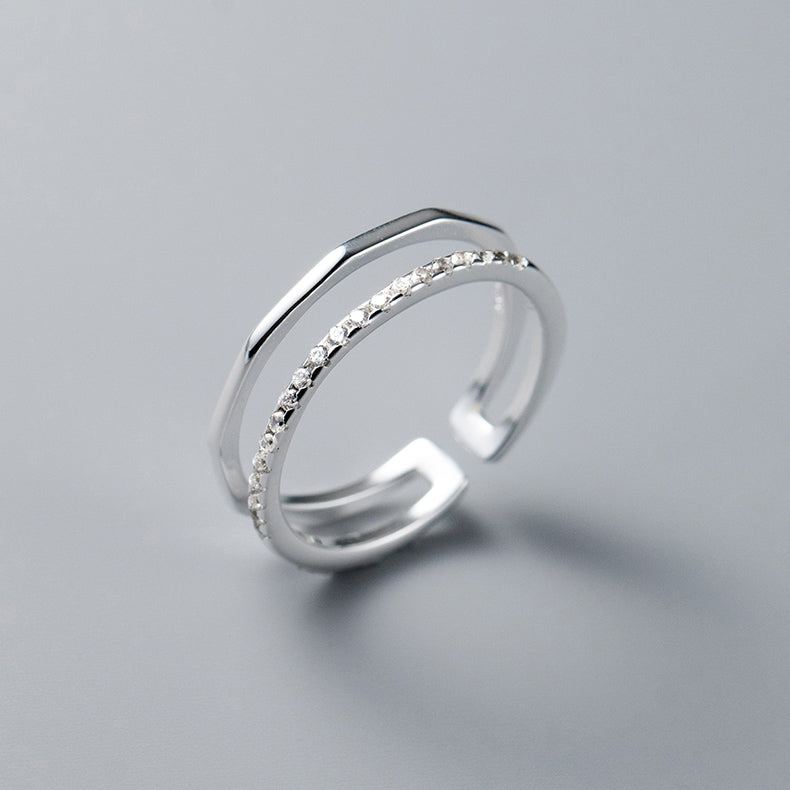 - A beautifully crafted 925 sterling silver ring featuring a double band with delicate gemstones.