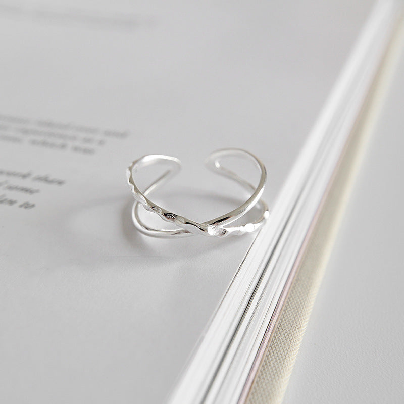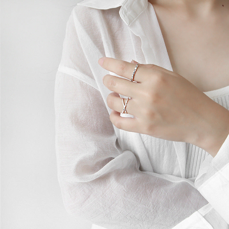 - A model's hand displaying the stylish crossover sterling silver rings, reflecting the latest Korean fashion trends.
