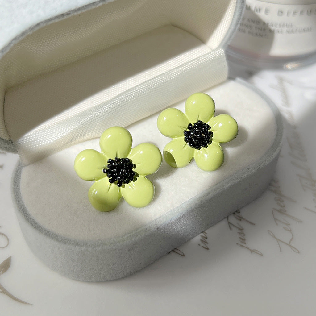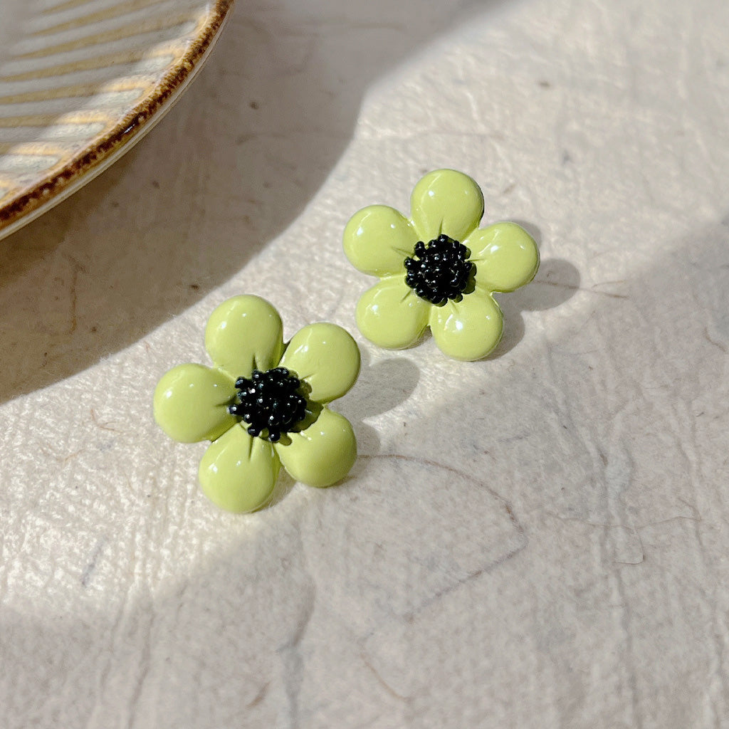 - Product Name: Summer Fresh Style Green Enamel Daisy Flower Stud Earrings