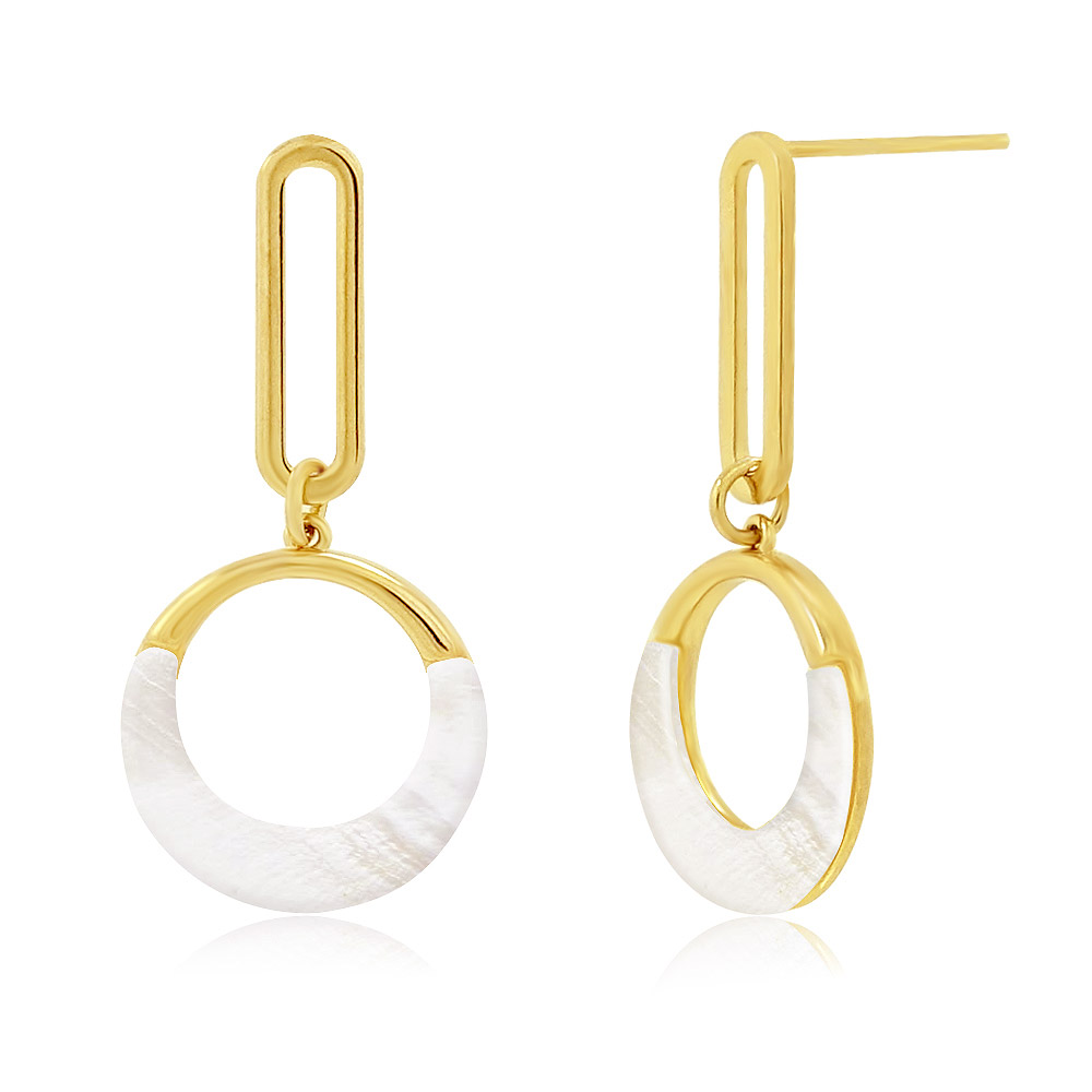 Lightweight Gold-Plated Brass Earrings with White Shell