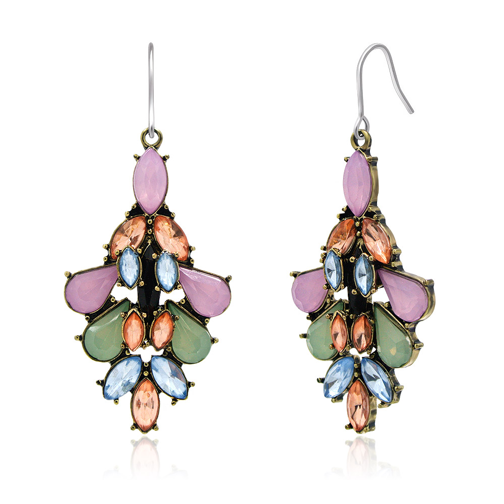 Crafted with a durable alloy base and finished with a lustrous gold plating, these earrings offer both style and quality. The intricate design features a delightful mix of Pink Opal, Pacific Opal, Aquamarine, and Light Pink poly/resin fittings, creating a stunning visual effect. The secure wire closure ensures they are comfortable for all-day wear.