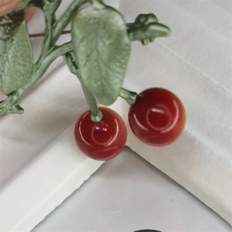 Sweet Retro Cherry Baked Paint Brooch for Women (5 pcs) - Custom Jewelry Manufacturing