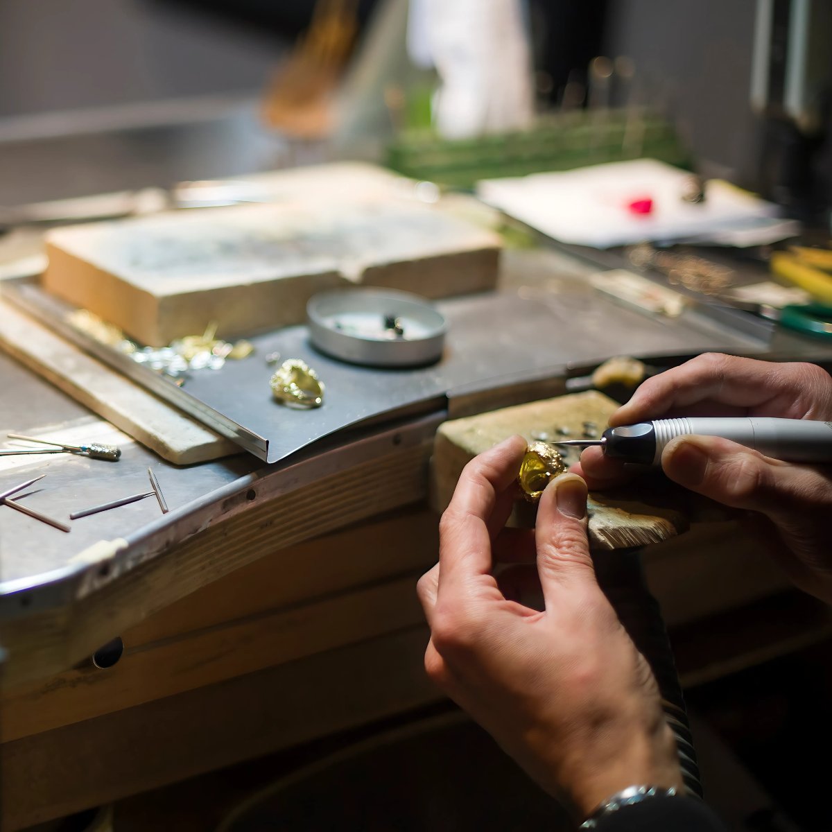 - A skilled goldsmith meticulously crafting a piece of custom jewelry, highlighting JR Fashion Accessories' manufacturing expertise.