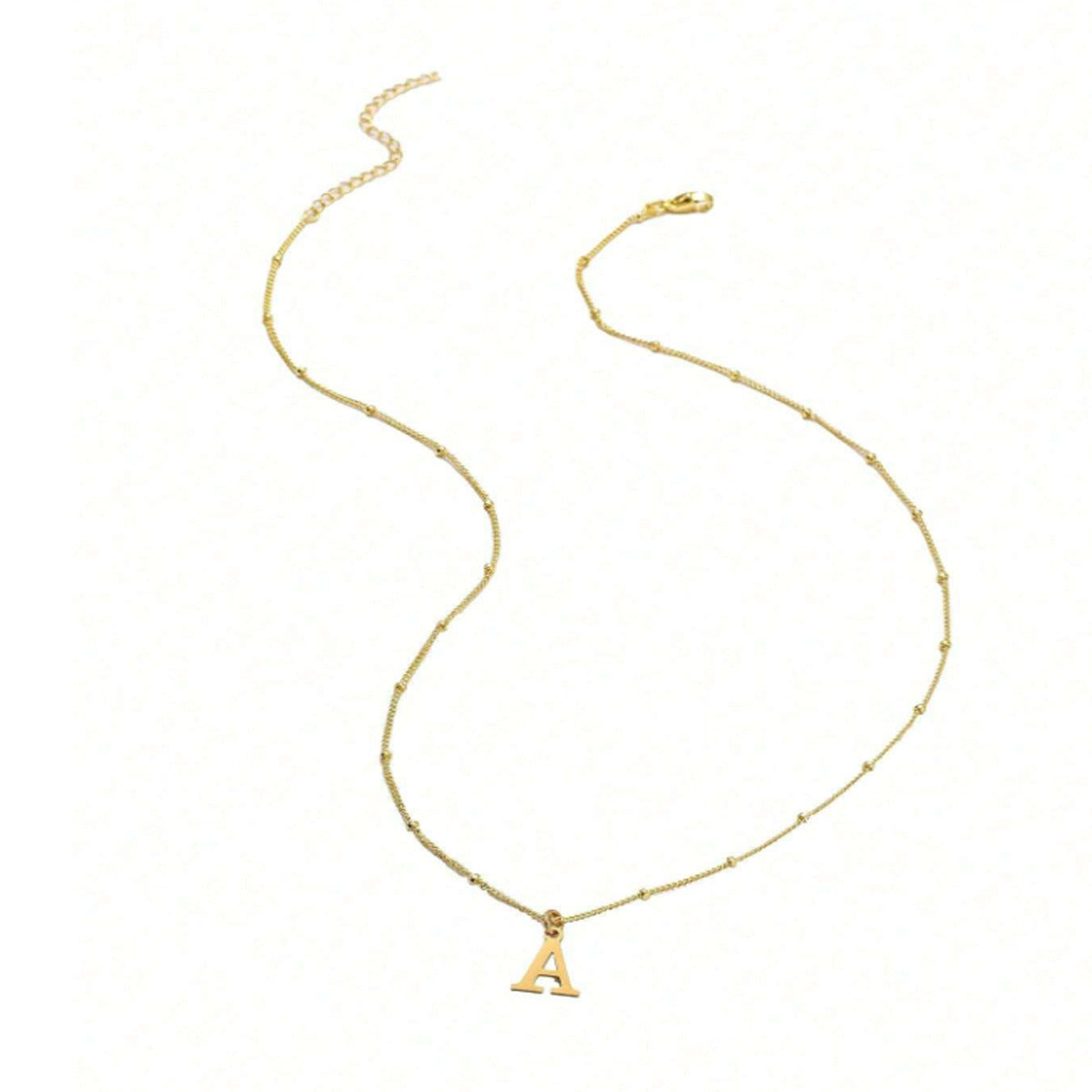 The minimalist necklace featuring a gold 'A' initial pendant.