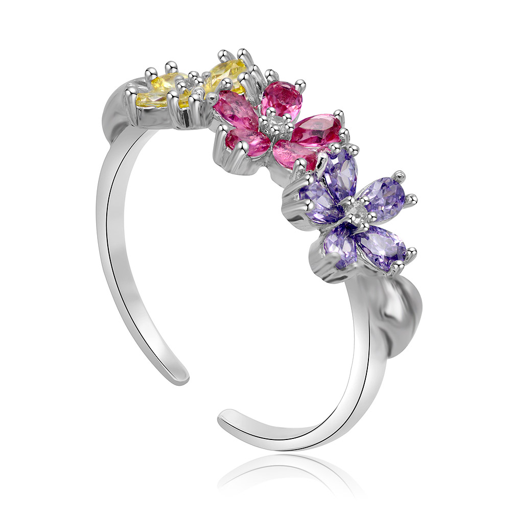 A vibrant, adjustable floral ring with multi-color cubic zirconia.