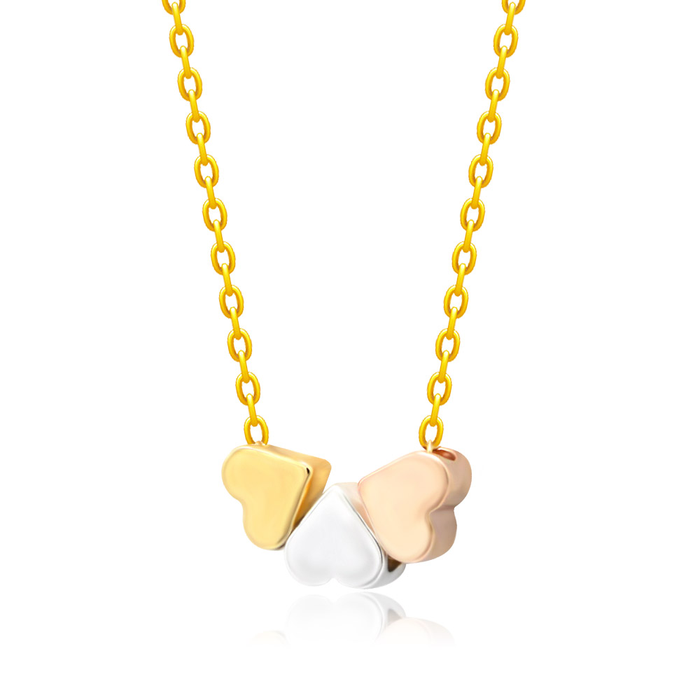 Elegant Three-Tone Heart Pendant Necklace