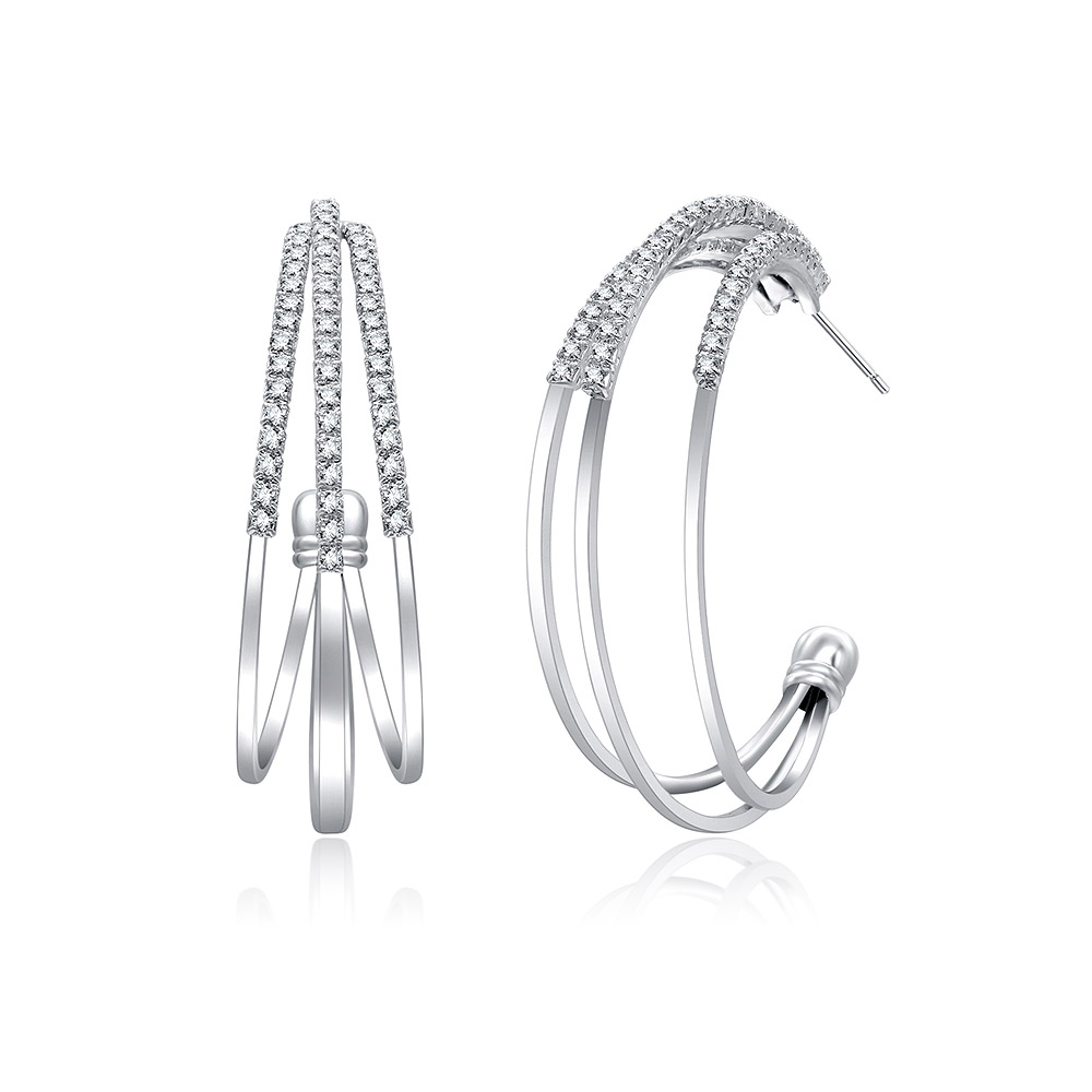 Discover the timeless elegance of our Triple Row Semi-Hoop Earrings, a beautifully sparkling twist on a classic jewelry piece. Crafted from high-quality brass with a lustrous rhodium plating, these earrings are perfect for sensitive ears. Each hoop is meticulously set with brilliant white cubic zirconia, adding a touch of glamour to any outfit. With an inner diameter of 35mm and a width of 12mm, they make a statement while remaining comfortable for everyday wear. As a leading manufacturer, JR Fashion Accessories offers these exquisite earrings for wholesale and custom OEM/ODM orders, ensuring exceptional quality and design.
