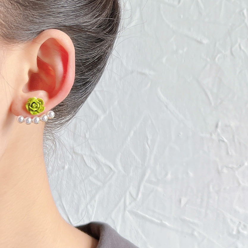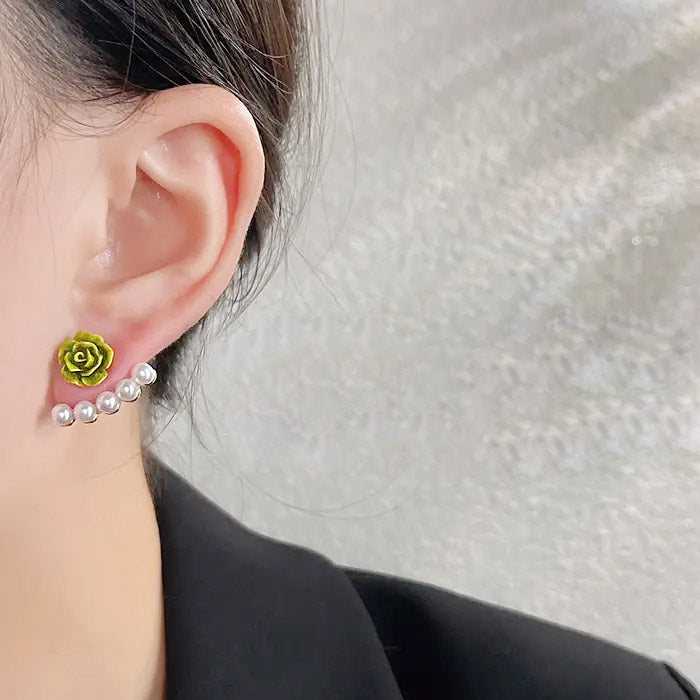 Two-wear 3D Resin Rose Flower with Pearl Stud Earrings (5 pairs) - Custom Jewelry Manufacturing