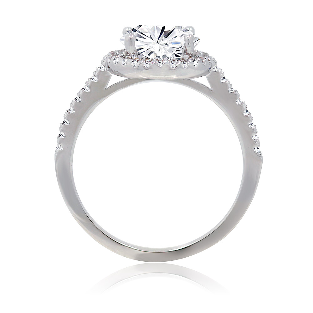 Angled view of the Unique Forever Engaged Ring, displaying the brilliance of the central halo and the elegant design of the band.