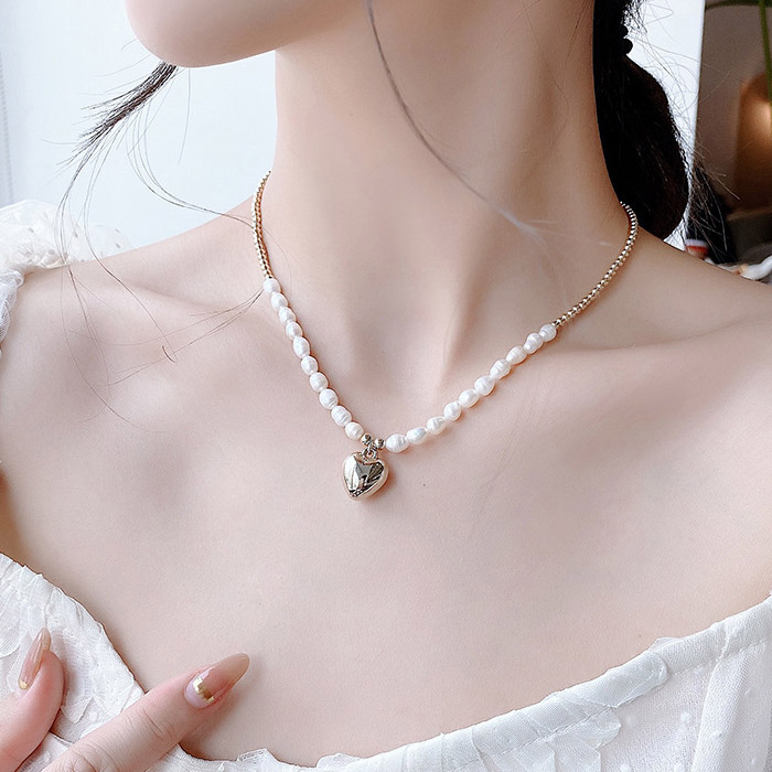 Embrace romance with our exquisite Valentine Heart Pendant Pearl Necklace. This lovely piece features elegant tiny freshwater pearls gracefully arranged on a gold-plated brass chain, culminating in a charming heart pendant. Perfect for gifting or adding a touch of elegance to any outfit, this necklace is available individually, as a bracelet, or as a complete set. As a leading manufacturer, JR Fashion Accessories offers factory-direct pricing for wholesale orders, ensuring exceptional quality and value.