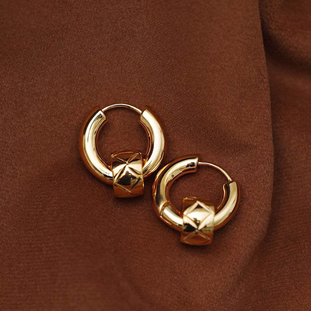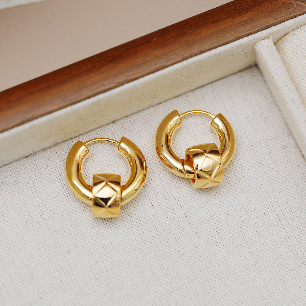 Geometric-style gold-plated huggie earrings.