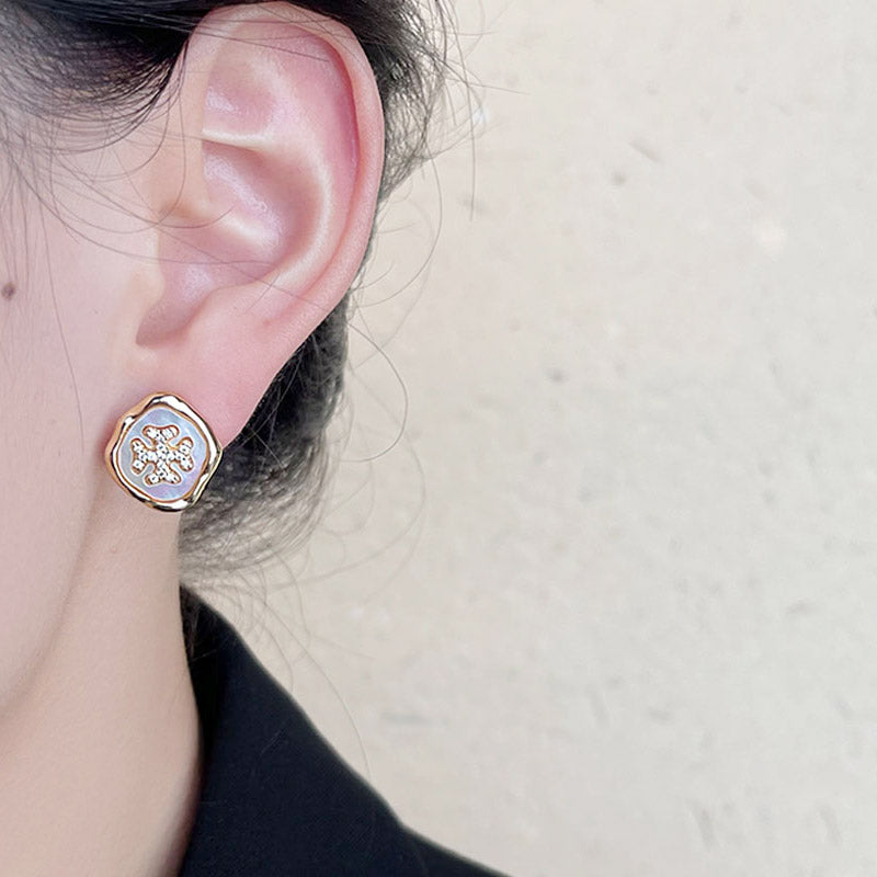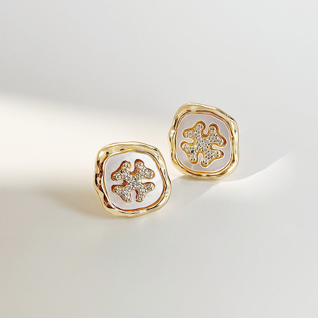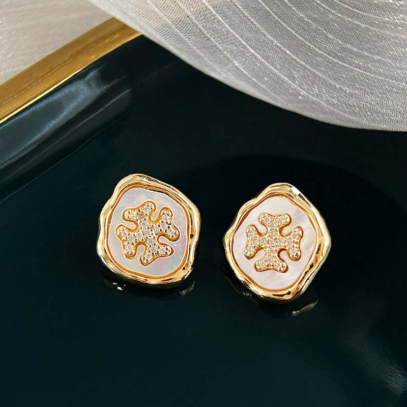 - Product Name: Vintage Gold Plated Zircon Mother of Pearl Shell Stud Earrings (5 Pairs)