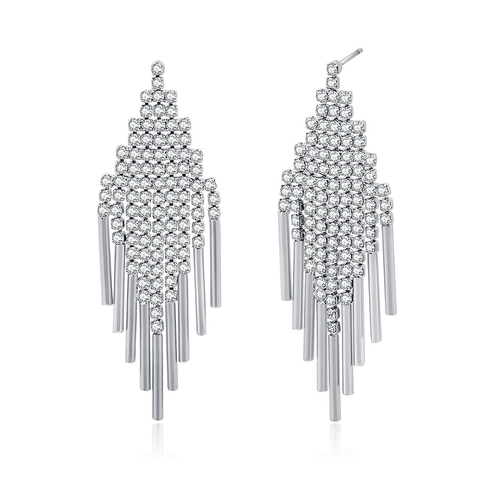 Elevate your style with these stunning Waterfall Crystal Dangle Earrings. Crafted from high-quality brass with a lustrous rhodium plating, these earrings feature a cascade of brilliant white Czech crystals that catch the light beautifully. Measuring 50x16mm, their elegant drop design makes them a perfect accessory for parties, weddings, and special occasions. As a standout piece from the Crystal collection by JR Fashion Accessories, they offer exceptional sparkle and an eye-catching silhouette that is sure to turn heads.