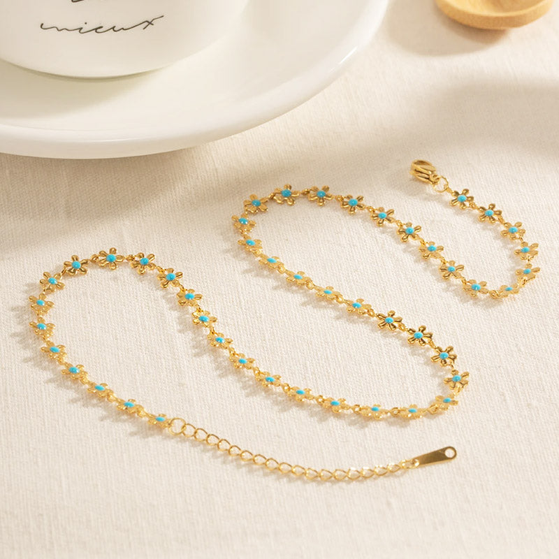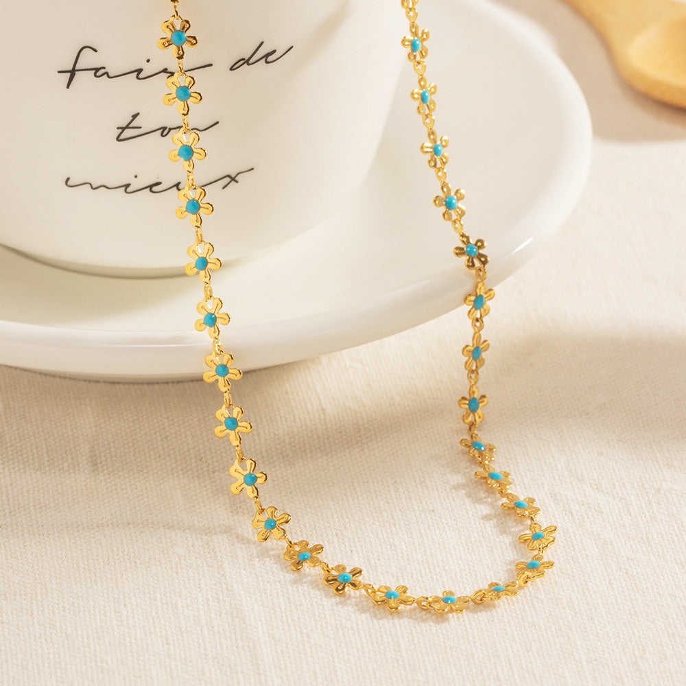- Product Name: Waterproof Hypoallergenic Stainless Steel Bohemia Blue Enamel Flower Charm Chain Necklaces (Set of 5)