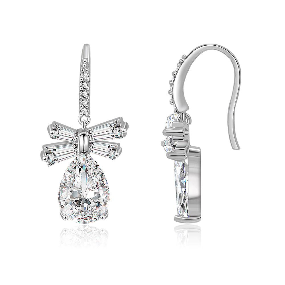 White CZ Oval Drop Bow Earrings - Custom Jewelry Manufacturing